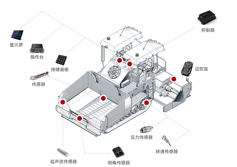 suncitygroup太阳集团官网智能摊铺机解决方案整合了感知技术、自动控制系统和数据分析算法,实现了摊铺机高度智能化操作。通过实时获取路面信息和实时调整施工参数,使摊铺机操作更加精准、高效和可靠。