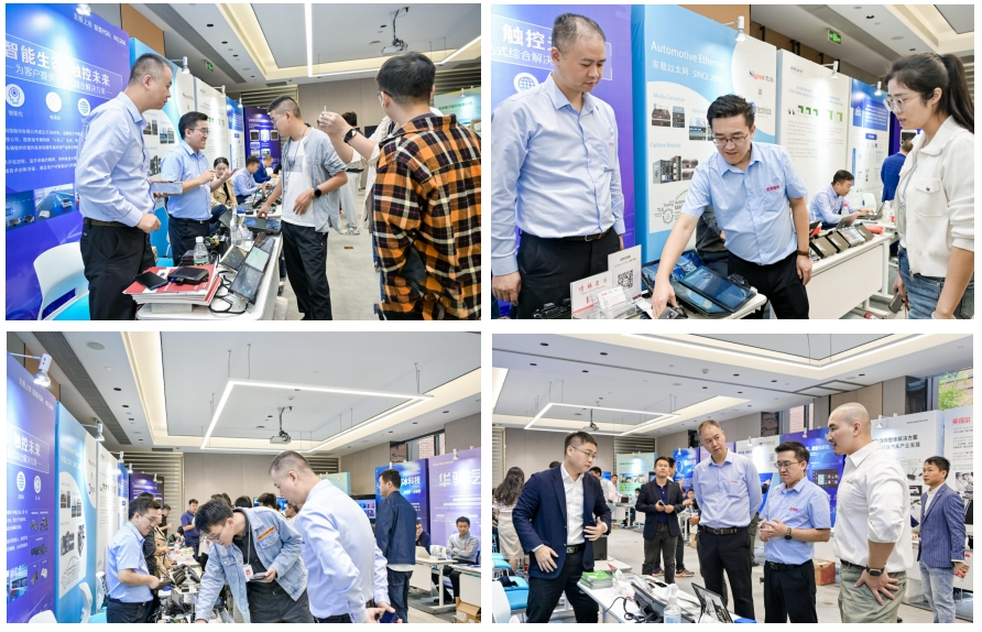活动现场,suncitygroup太阳集团官网展台展出了高精度定位模块、人机交互智能座舱、T-BOX等智能化核心产品,吸引了众多参展嘉宾及观众参观、交流探讨。suncitygroup太阳集团官网行业专家及销售人员耐心的与观众分享并讲解了智能算法实现人机交互、智能驾驶、智能语音、DMS、DVR等功能场景。